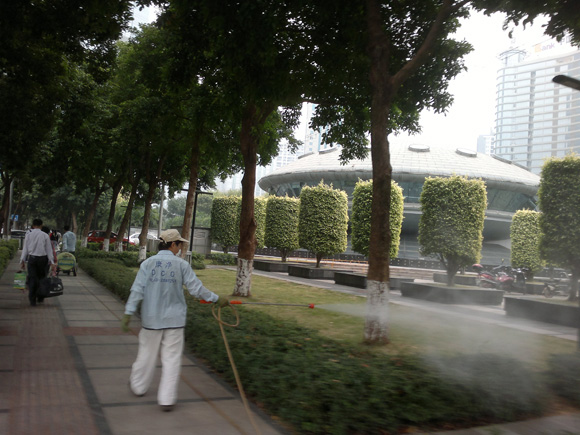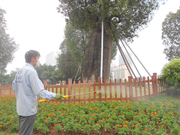 為做好2012年南寧兩會(huì)一節(jié)前、中、后部分重點(diǎn)公共場(chǎng)所保障性消殺工作,2012年09月18日至30日在南寧市愛衛(wèi)辦的組織下,康凈公司四個(gè)組分別對(duì)“南湖南廣場(chǎng)、朝陽(yáng)廣場(chǎng)、金湖廣場(chǎng)、民歌湖廣場(chǎng)”進(jìn)行加強(qiáng)“四害”消殺工作,圖為康凈公司技術(shù)人員在現(xiàn)場(chǎng)進(jìn)行施工。